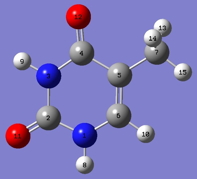 | 14N nqcc's in thymine were determined by López et al. [1]. A semi-experimental equilibrium structure (reSE) was derived by Vogt et al. [2]. |